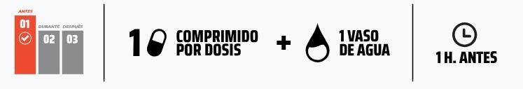 Es de práctico consumo y ofrece una dosis justa y segura. Se puede incorporar en competencias o entrenamientos de alto rendimiento, entre 45 y 60 minutos antes del inicio de la actividad física; su efecto dura hasta 5 horas.